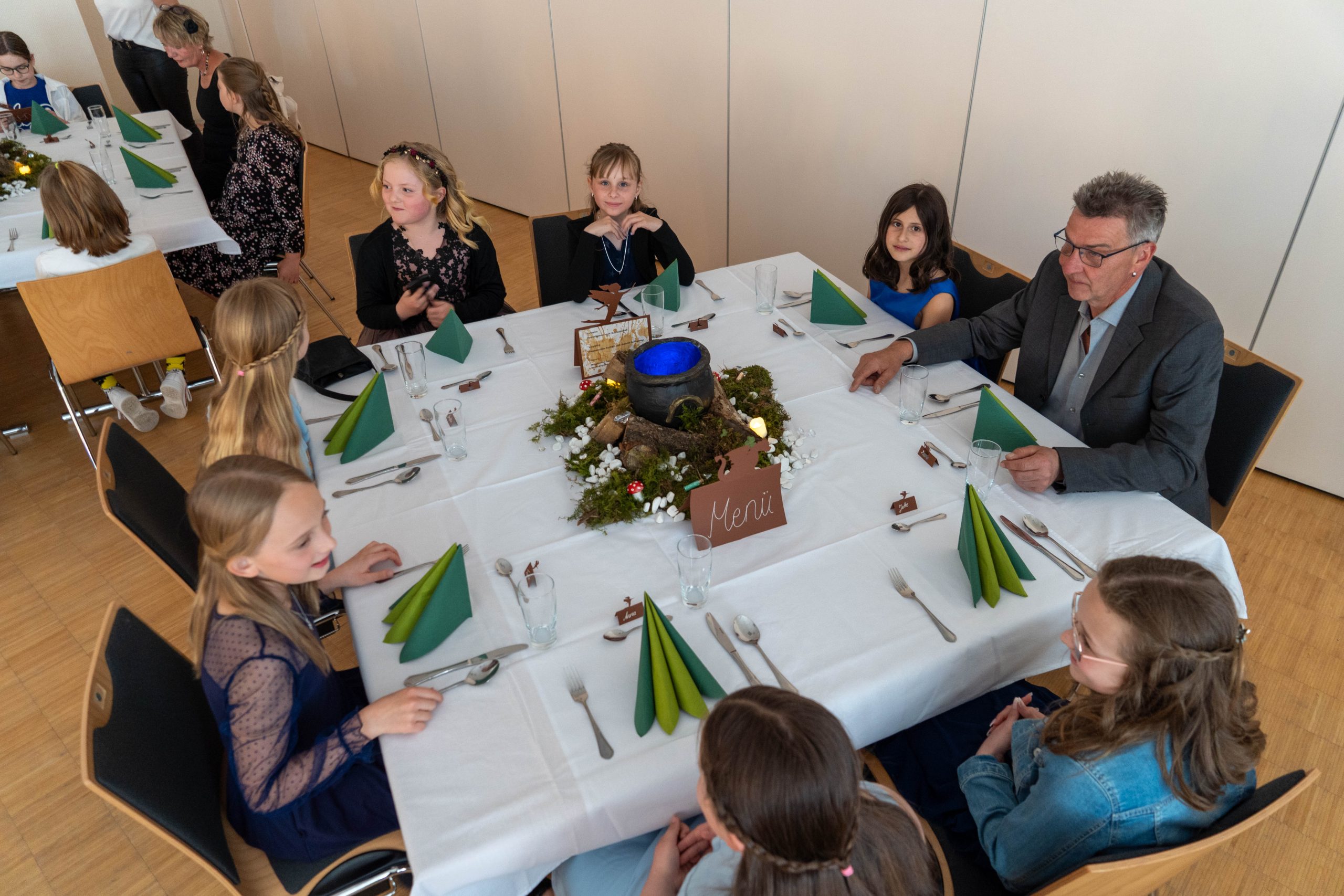 Ein Abend voller Magie, Genuss und Gemeinschaft – so erlebten Kinder, Eltern und Gäste am 16. Mai 2025 die Ernst-Rodiek-Halle. Für eine Nacht verwandelte sie sich in einen geheimnisvollen Ort: Das Hortrestaurant öffnete seine Türen unter dem zauberhaften Motto „Der Zauberwald“.
